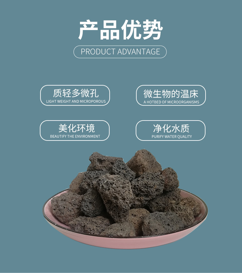 2、多孔性:火山巖是天然蜂窩多孔,是菌膠團(tuán)是佳的生長環(huán)境。